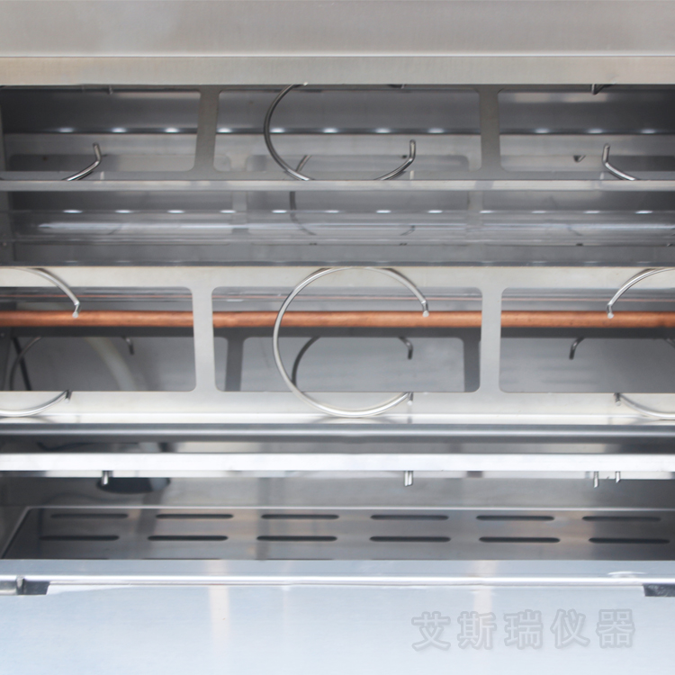 由于水分是加速老化的重要破壞因素,本裝置采用水噴淋方式模擬濕氣的影響。通過對(duì)噴淋時(shí)間的設(shè)定,可以比較接近某些使用的環(huán)境條件,如溫度劇變或雨水沖刷所造成的機(jī)械侵蝕等。